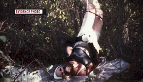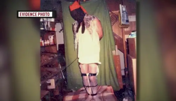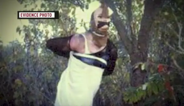Hängande från ett träd. I olika selfies hängde Rader sig själv i ett träd med utstuderad bondage.